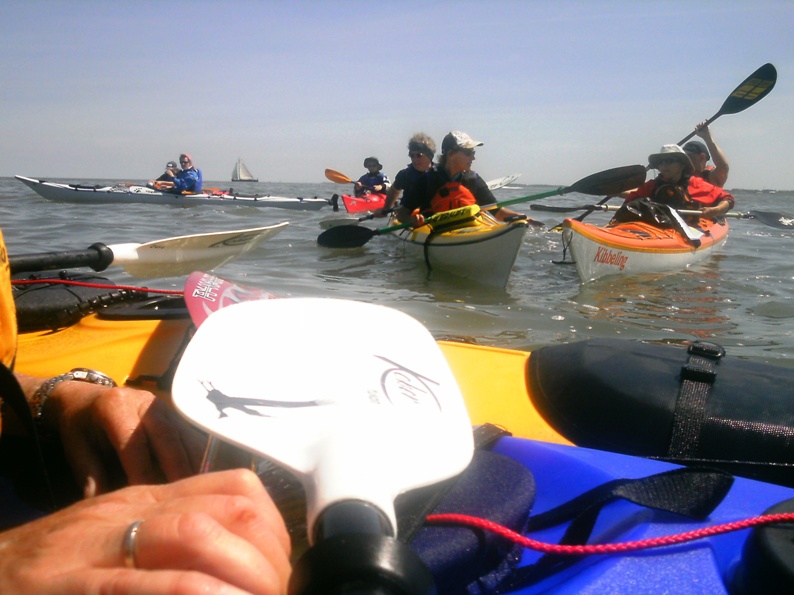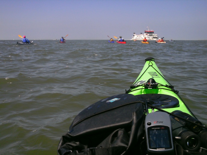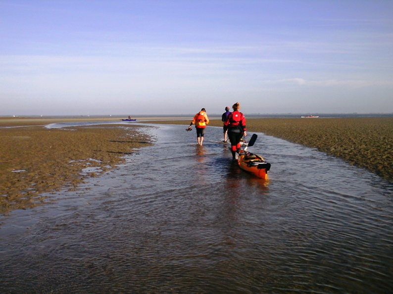 Wir sind unterwegs auf der Nordsee und unsere Seekajaks befinden sich in ihrem Element. Unser Ziel ist es, die nordfriesische holländische Insel Schiermonikoog von Lauwersoog mit ablaufender Ebbe zu erreichen. Die Salzkristalle trocknen und glitzern auf dem Kajakdeck. Mit der ablaufenden Strömung und dem Kurs Nordwest nehmen unsere Kajaks gut Fahrt auf. Die schlanken Bugs durchschneiden die seichten Wellenkämme und eine Robbe schaut erstaunt hinter den bunten Kajaks hinterher. Als wir die Insel erreichen ist die Ebbe schon weit fortgeschritten. Bis wir uns auf die Rückfahrt begeben können, müssen wir einige Stunden auf die einsetzende Flut warten .....
