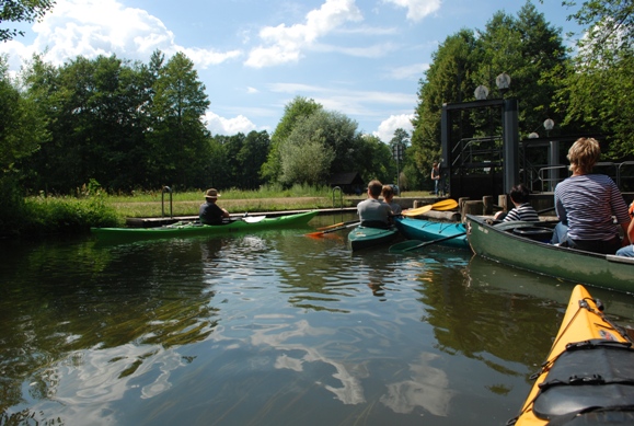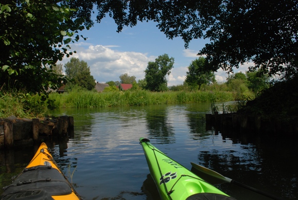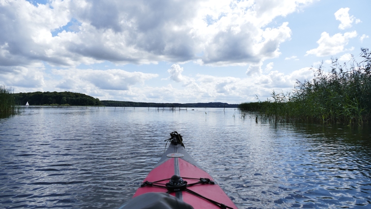 Schon die Wikinger zogen die Boote auf Holzbohlen zwischen der Ostsee und der Nordsee hin und her. Als Wasserwege, zur Verkürzung des Landweges nutzten sie dabei Schlei und Eider. Ein erster durchgehender Wasserweg für größere Schiffe entstand 1874 durch den Eiderkanal. Nach Start am Strand des Camps überqueren wir den Flemhuder See und finden schnell am gegenüber liegenden Ufer die kurze Umtragestelle, an der wir in den Eiderkanal überheben. Schon bald erreichen wir bei Achterwehr einen Bootsverleih an einem alten Bootshaus. Ab jetzt sind wir nicht mehr allein unterwegs. In nordwestlicher Richtung folgen wir dem Flussverlauf und gleiten durch eine nahezu unberührte grüne Flusslandschaft. Schließlich öffnet sich das enge Flusstal und wir erreichen den Westensee. An einer Badestelle am rechten Flussufer machen wir Pause. Nun paddelt man entweder heimwärts nach Flemhude oder überquert den See um in den Zufluss zur Eider zu gelangen.