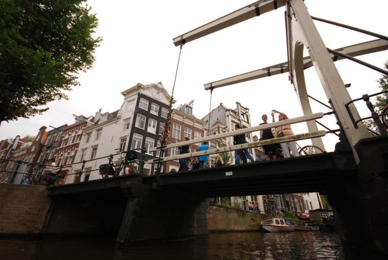Eine besonders interessante Erkundung der Stadt mit dem Kajak stellt die vom Kanuverein Sloterplas im Zweijahresrhythmus am ersten Septemberwochenende mit viele Liebe organisierte Grachtentochten dar. Es wird bei Anbruch der Dunkelheit gestartet. Während der Tour erlebt man das quirlige Nachtleben Amsterdams mit dem Kayak . Die Tour geht sogar durch das Rotlichtviertel und die beleuchteten Brücken und Sehenswürdigkeiten stellen ein phantastisches Kanuerlebnis dar. Für diese Tour ist eine weiße Rundumbeleuchtung auf dem Kayak notwendig. Beim Bau dieser Beleuchtungseinheit ist der Kreativität kaum eine Grenze gesetzt. Bei der Planung und dem Bau beginnt bereits die Vorfreude auf diese Tour. Bereits viermal haben wir so Amsterdam bei Nacht erpaddelt. Die heutige Tagestour zu zweit ist gemütlicher . Diesmal genießen wir die Ruhe ohne den Pulk von Kayaks. Die wärmende Sonne tut ihr Übriges. Wir benötigen keine Führung durch das Grachtenlabyrinth, da Navi, Karte und Grachtennamen gut lesbar sind.