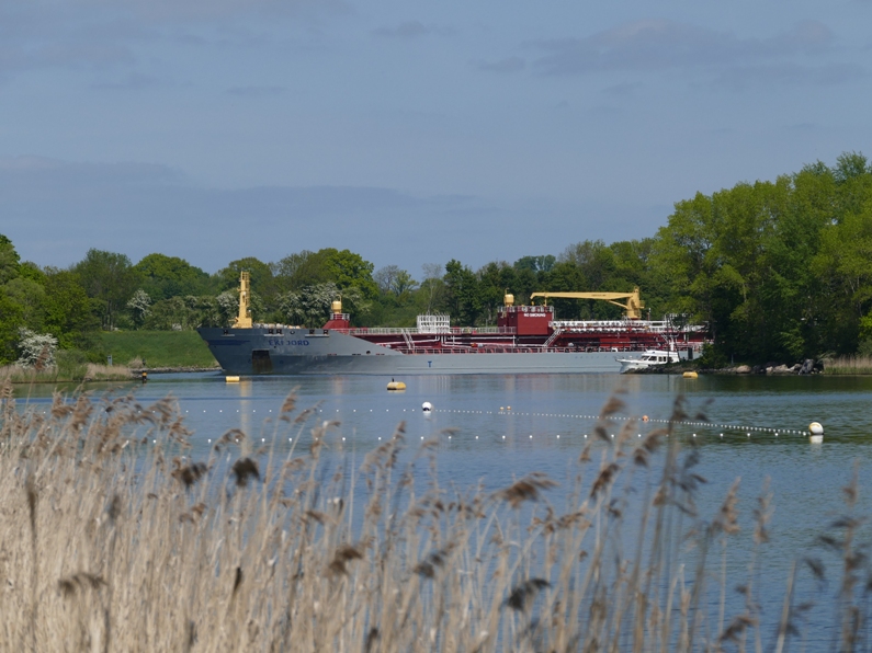 Unsere erst Tour führt uns hinaus auf den Kanal. Mit 35.000 Schiffen pro Jahr ist der Nord- Ostseekanal eine der meist befahrensten Wasserstraßen der Welt und so dauert es nicht lange, bis sich die ersten ozeantauglichen Tank- und Containerschiffe unserem kleinen rotem russischen Faltboot, „Roter Oktober“ nähern. Da sich die Pötte in den Schleusen sammeln kommt ein ganzes Rudel von kleinen Segelschiffen und Ozeanriesen auf uns zu. Glücklicherweise sind momentan nur Richtung Kiel fahrende Schiffe unterwegs, sodass wir zur Kanalspuntwand und den sich dort zurückschlagenden Wellen genügend Abstand halten können. Da der Kanal nicht besonders breit ist, kann man das Verhalten und die Fahrtroute der Containerschiffe und Tanker jedoch gut einschätzen. Die von den Schiffen erzeugten Wellen laufen gleichmäßig auf unseren Zweier zu. Wieder einmal zeigt sich die Stärke des Faltbootes bei Wellengang. Gutmütig und sicher schaukelt „Roter Oktober“ durch die Wellen. Fast streichelnd spüren wir, wie sich das Faltbootunterschiff an die anlaufenden Wellen anschmiegt.