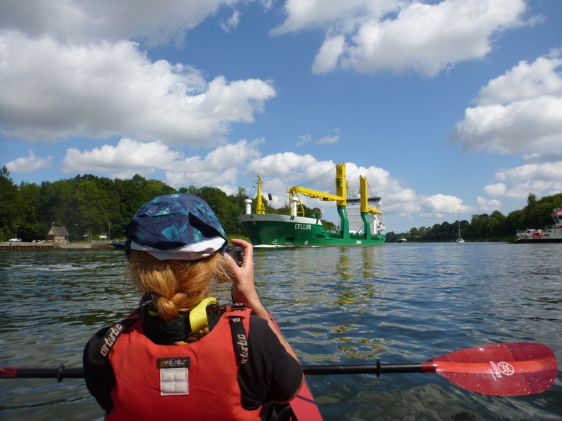 Nord- Ostsee- Kanal- „paddeln inmitten von Ozeanriesen“