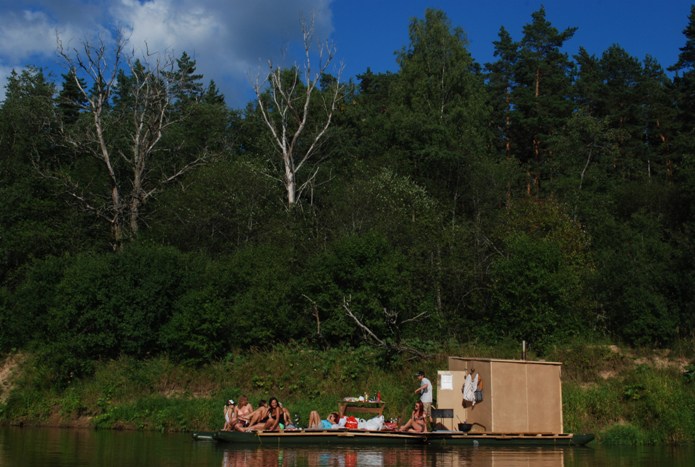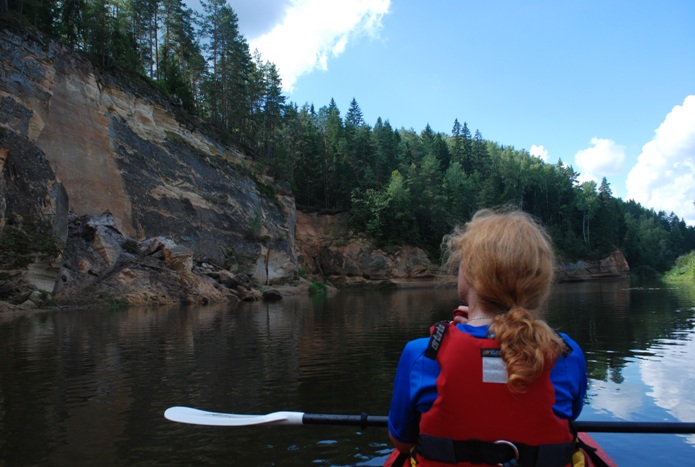 Die schönste Flussetappe erwartet uns mit dem Adlerfelsen vor Cesis. Auch eine Gruppe junger Lettinnen, die ihren Urlaub mit einem Floß auf der Gauja verbringen, treffen wir hier wieder. Auf unsere Frage, wo denn die Männer an Bord geblieben wären, erklären sie uns auf englisch, dass nur einer als Steuermann noch da wäre, die anderen sind bereits lange von Bord geflohen.