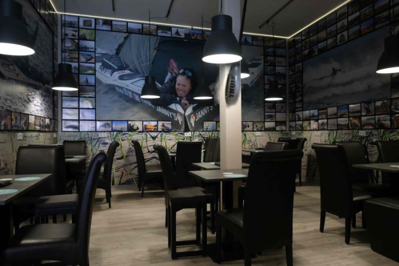 Alle ihre Fahrten und ihre Seekajak-Highlights sind an den Wänden der gemütlichen Eisdiele wie in einem persönlichen Museum plakattiert (s. Bild)
