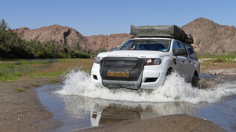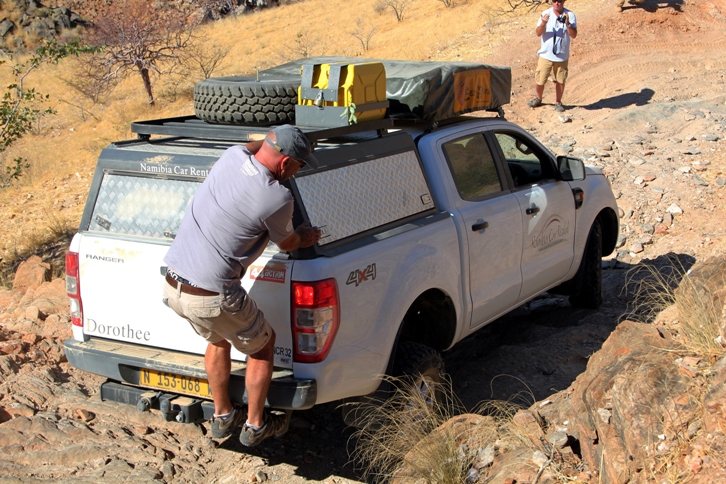 Nur wenige Autovermietungsfirmen erlauben die Fahrt in die Dünenkämme oder in die Trockenflussgebiete des Kaokolandes und rüsten ihre Fahrzeuge hierfür aus. Eine Befahrung des van Zyl’s Passes ist bei der Vermietung von einer Befahrung ausgeschlossen. Nach Absprache mit dem Vermieter kann ggf. eine kostenträchtige Extrafahrzeugversicherung abgeschlossen werden. Im Falle eines Fahrzeugschadens kann man auf jeden Fall mit einer hohen Eigenbeteiligung rechnen. Bei Nichtbeachtung der Vermietungsregeln liegt kein Versicherungsschutz vor! Unsere Fahrzeuge wurden vollständig von Namibia Car Rental in Windhoek ausgestattet. Auch die Versicherung der Fahrzeuge und die Planung der „wilderness safari“ ins Kaokoland wurde ebenfalls von Namibia Car Rental in Windhoek vorbereitet.