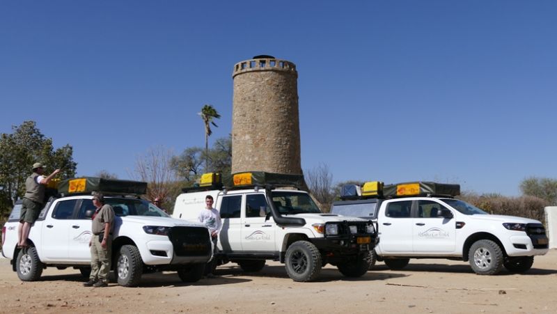 Wir haben Windhoek mit drei Fahrzeugen verlassen und uns auf den Weg in die letzte wirkliche Wildnis Namibias, abseits der touristischen Pfade in das Kaokoland aufgemacht. Wir, das sind Bennie und Louise, die in Opuwo, der Haupstadt des Kaokolandes aufgewachsen sind, Howard, dessen Bruder Owen mit Sohn aus Windhoek und wir als einzige Europäer in diesem Team. Bei den Allradlern handelt es sich um zwei neue Ford Ranger Pick Ups und einem Toyota Land Cruiser. Die Fahrzeuge sind jeweils mit Dachzelt, MT- Bereifung, 2 Reserverädern, zwei Dieseltanks, Zweitbatterie zum Betreiben der Engel-Kompressor- Kühlboxen, zwei 20 Liter Reservekanistern und 30 L Frischwasser ausgerüstet.