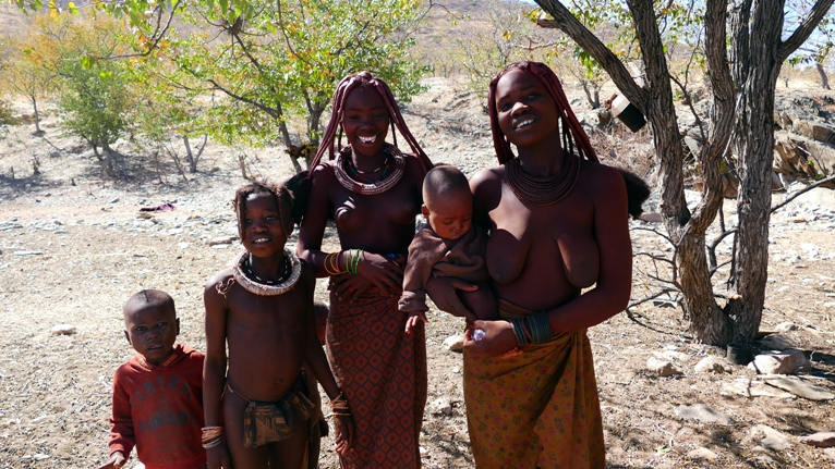 In den nächsten Tagen werden wir entlang unserem einsamen Tourverlauf immer wieder Kontakt mit der einheimischen Bevölkerung aufnehmen. Zurückhaltend, stolz, aber auch neugierig und fröhlich treten uns die Himbas in diesem noch nicht touristisch erschlossenen Landstrich Namibias gegenüber. Ihr Leben gestaltet sich immer noch so, wie sie es von ihren Vorfahren und Ahnen vorgelebt bekommen haben. Auch, wenn die moderne Welt nur einige hundert Kilometer entfernt liegt, hat sie hier noch nicht Einzug gehalten. Unser Team genießt jede Begegnung und es wird viel zusammen gelacht.