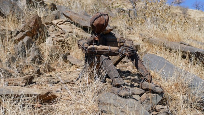 Der Nordwesten Namibias und seine Einwohner, das Himbavolk waren immer schon durch Mythen und Sagen geprägt. Die Himbas bezeichnen ihr Kaokoland als „Platz der Stille“. Seit einiger Zeit gibt es einen neuen Mythos, der dem 4x4- Durchreisenden begegnet. In den letzten Jahren gab es mehrere Sichtungen lebensgroßer Felsskulpturen, die sich kunstvoll in diese lebensfeindliche, aber doch faszinierende Wüstenlandschaft und in ihre Umgebung eingliedern. Diese „Lone Men“, hergestellt aus den Steinen des Kaokolandes überraschen durch lebensechte fast menschliche Körperhaltungen.